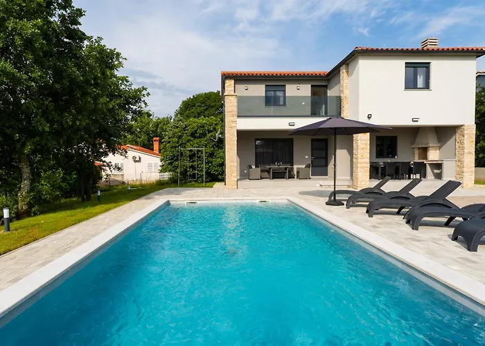 Η Villa Jan Labin παρέχει στους επισκέπτες βεράντα με πισίνα.